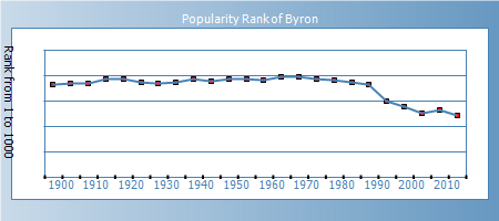 Meaning: Derived from a surname and place name; which is based on the Old English byre meaning cowshed. Famous bearer: The poet Lord Byron.