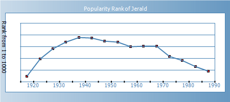 Expression: People with the name Jerald are excited by change, adventure, and excitement. They are dynamic, visionary and versatile, able to make constructive use of freedom. They fight being restricted by rules and conventions. They tend to be optomistic, energetic, intelligent, and to make friends easily. They may be changeable, restless, untidy, and rebellious.
