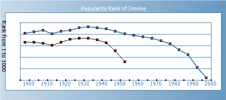 Expression: People with the name Jimmie are excited by change, adventure, and excitement. They are dynamic, visionary and versatile, able to make constructive use of freedom. They fight being restricted by rules and conventions. They tend to be optomistic, energetic, intelligent, and to make friends easily. They may be changeable, restless, untidy, and rebellious.