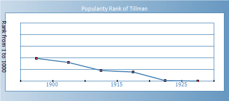 Soul Urge: People with the name Tillman have a deep inner desire to use their abilities in leadership, and to have personal independence. They would rather focus on large, important issues, and delegate the details.