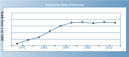Expression: People with the name Brennan are excited by change, adventure, and excitement. They are dynamic, visionary and versatile, able to make constructive use of freedom. They fight being restricted by rules and conventions. They tend to be optomistic, energetic, intelligent, and to make friends easily. They may be changeable, restless, untidy, and rebellious.