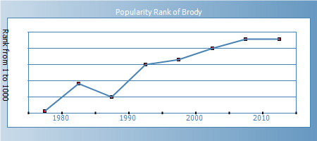 Expression: People with the name Brody tend to initiate events, to be leaders rather than followers, with powerful personalities. They tend to be focused on specific goals, experience a wealth of creative new ideas, and have the ability to implement these ideas with efficiency and determination. They tend to be courageous and sometimes aggressive. As unique, creative individuals, they tend to resent authority, and are sometimes stubborn, proud, and impatient.