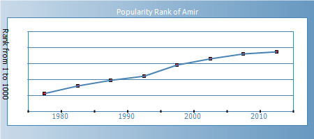 Expression: People with the name Amir are excited by change, adventure, and excitement. They are dynamic, visionary and versatile, able to make constructive use of freedom. They fight being restricted by rules and conventions. They tend to be optomistic, energetic, intelligent, and to make friends easily. They may be changeable, restless, untidy, and rebellious.