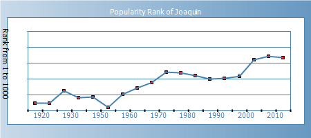 Expression: People with the name Joaquin value community and balance, and are dependable and considerate. They often tend to gravitate to occupations where they can act as peacemakers or negotiators, or fulfill these roles among their friends and family. They tend to be conventional, responsible, family-oriented, warm and affectionate. They sometimes worry obsessively about those they care for. They work for harmony and balance in their lives, and respond positively to beautiful things.