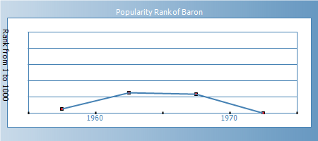 Expression: People with the name Baron are excited by change, adventure, and excitement. They are dynamic, visionary and versatile, able to make constructive use of freedom. They fight being restricted by rules and conventions. They tend to be optomistic, energetic, intelligent, and to make friends easily. They may be changeable, restless, untidy, and rebellious.
